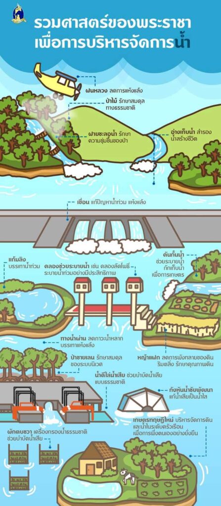 โดยเทคนิคในการบริหารจัดการน้ำต่าง ๆ ที่ได้ทรงพระราชทานไว้ ได้แก่